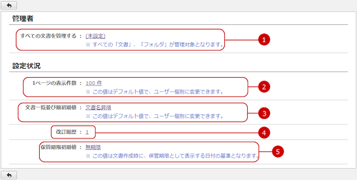 設定メニューの設定状況リンクを押すと、設定状況一覧画面が表示されます。