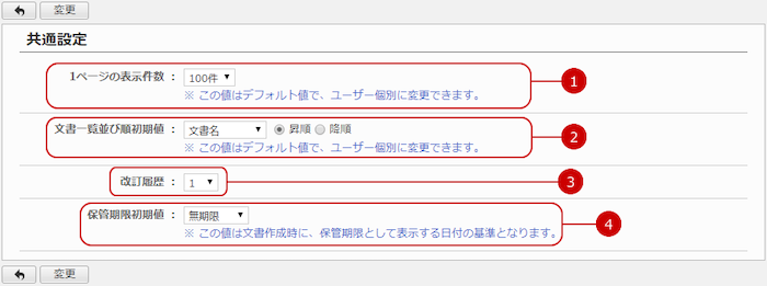 設定メニューの共通設定リンクを押すと、共通設定画面が表示されます。