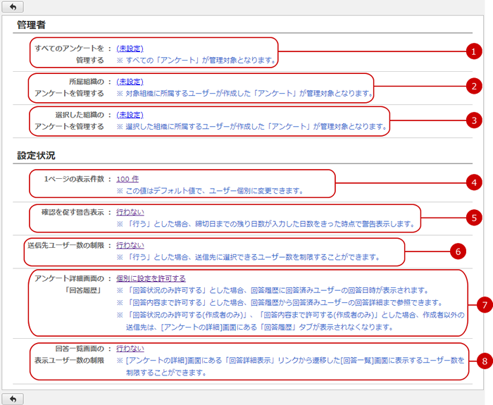 すべてのアンケートを管理する機能管理者の設定状況が表示されます。