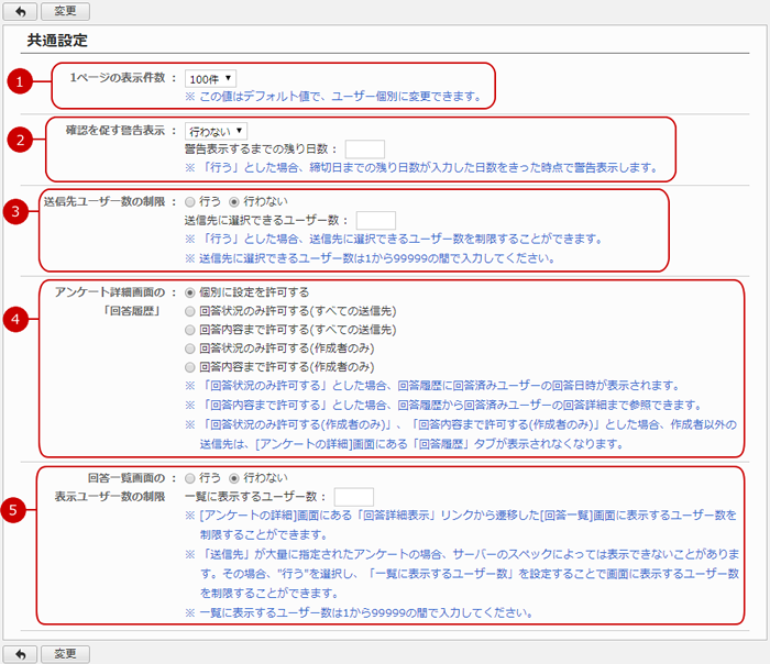 回答一覧画面の表示ユーザー数の制限を行うかの設定値が表示されます。