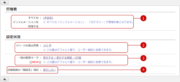 インフォメーション一覧に新着マークを表示するかを設定します。