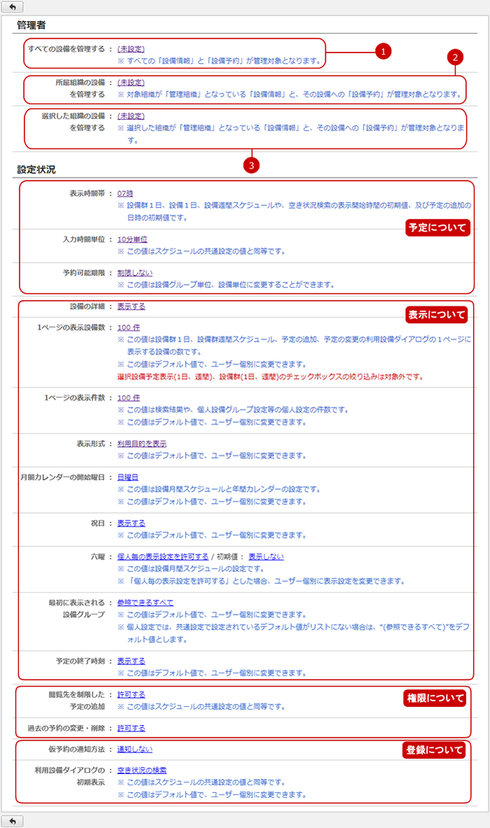 所属組織のみ・・・自分が所属している組織の設備を管理できます。