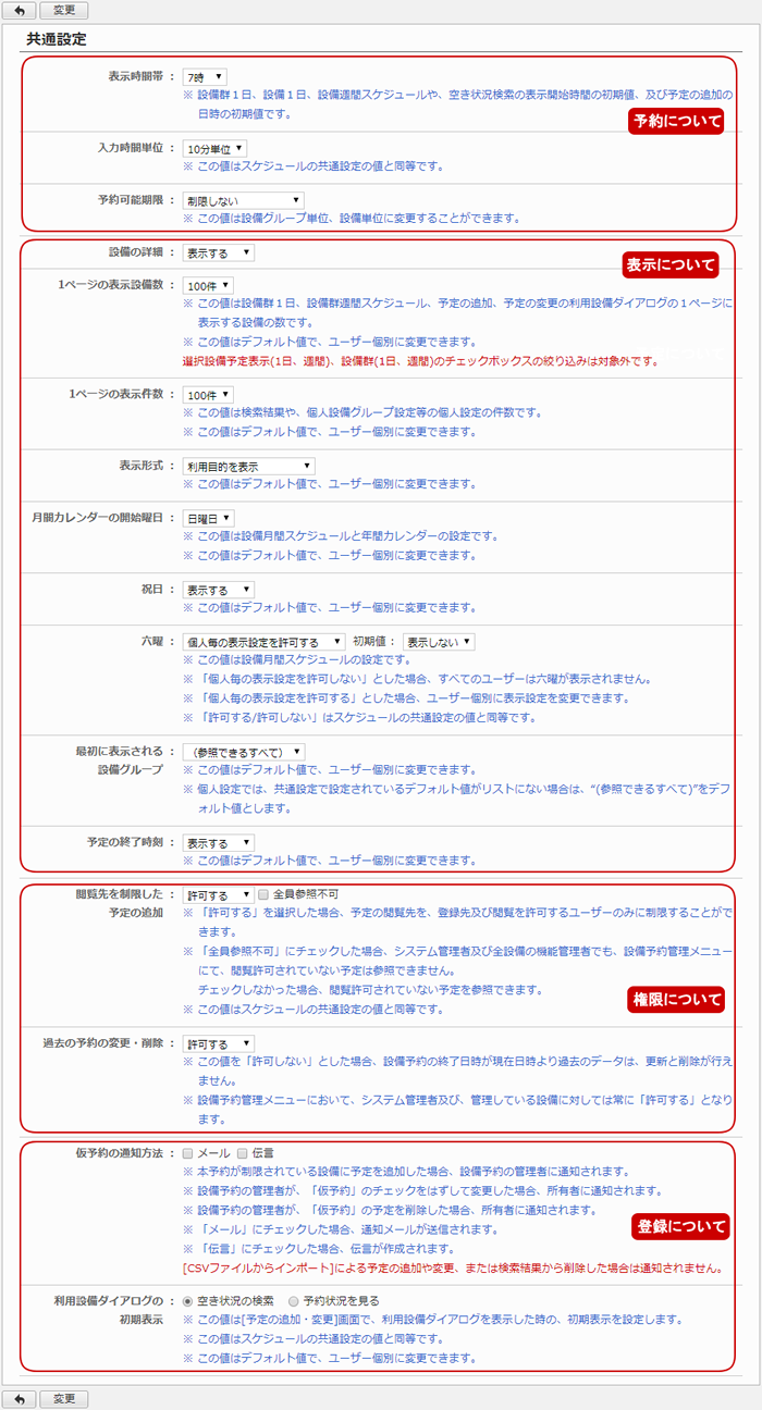 設定が完了したら、[変更]ボタンを押してデータを保存してください。