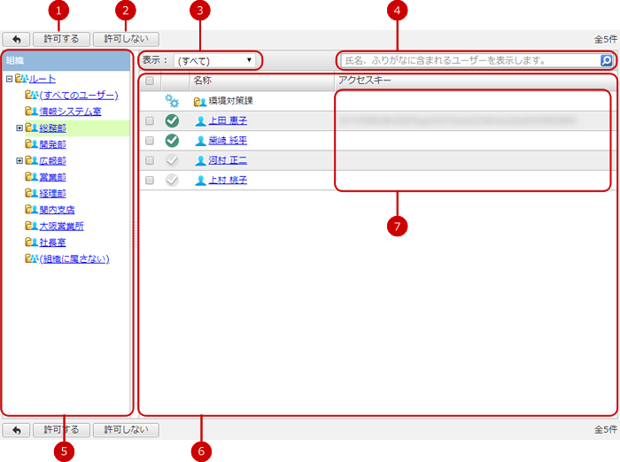 - "許可する"・・・アクセスキーの使用を"許可する"設定のユーザーを表示します。
