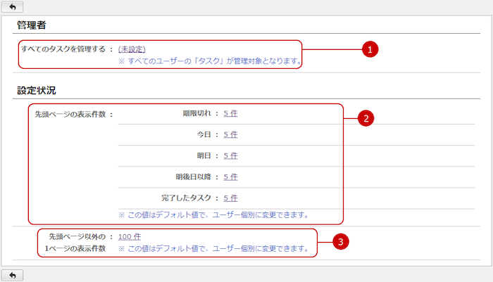 先頭ページ以外の1ページの表示件数の設定値が表示されます。