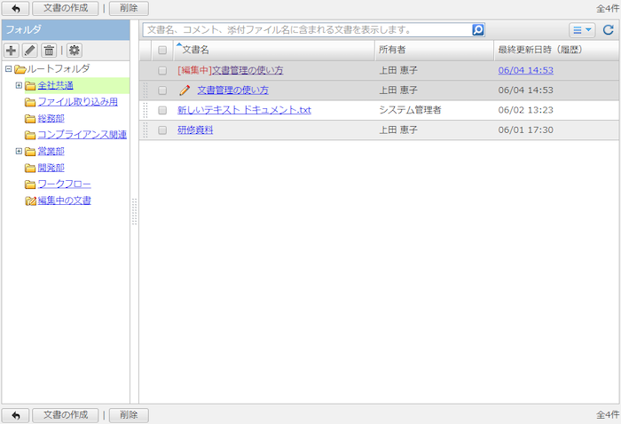 文書の一覧が表示されます。