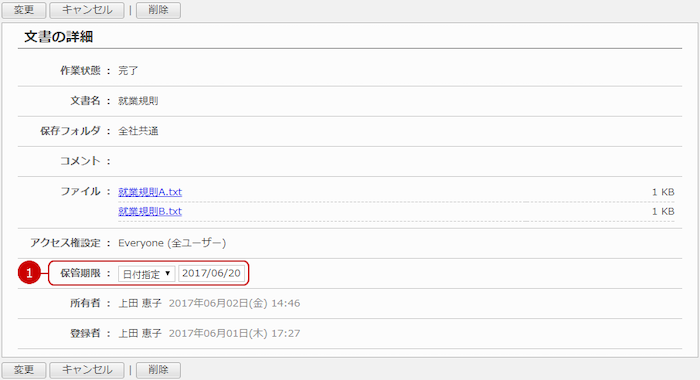 また、文書の保管期限を変更できます。