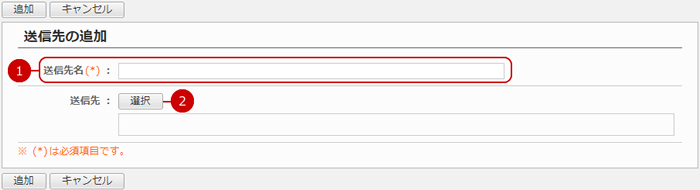 送信先設定一覧画面の[送信先の追加]ボタンを押すと、送信先の追加画面が表示されます。