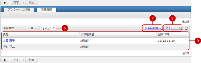 送信先の回答履歴一覧が表示されます。
