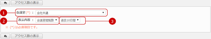 選択した会議室の総アクセス数、1日の平均アクセス数が表示されます。