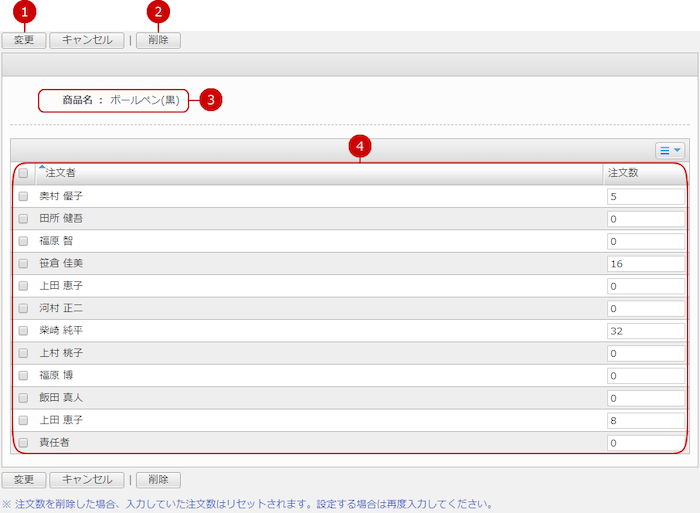 購買予約詳細画面の数量のリンクを押すと、注文数の変更画面が表示されます。