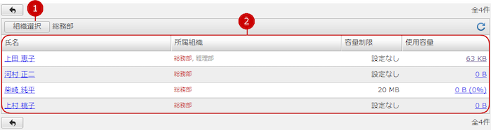 使用容量のリンクを押すと、対象のユーザーのメモ一覧画面が表示されます。