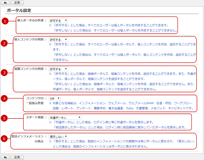 ポータルに表示するコンテンツの一覧の表示件数を設定します。