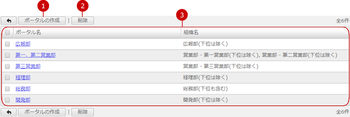※機能管理者の管理対象が「所属組織のみ」、「選択した組織」の場合、ポータル設定は利用できません。