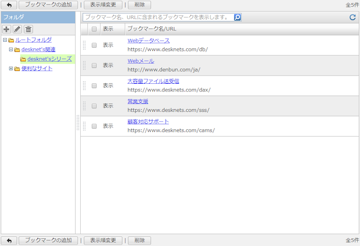 共有ブックマーク一覧は一般ユーザーが使用する個人ブックマーク一覧と同じ操作で利用できます。