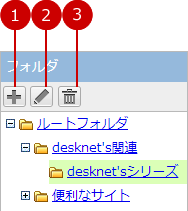 一覧のフォルダ一覧では、フォルダの作成、変更、削除を行うことができます。