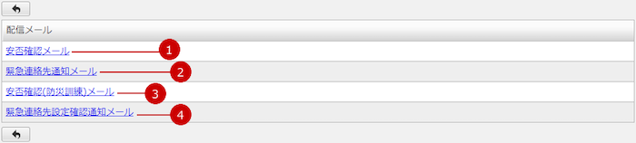 災害時などに安否状況を確認するメール、または防災訓練用の内容のメールを選択して配信ができます。