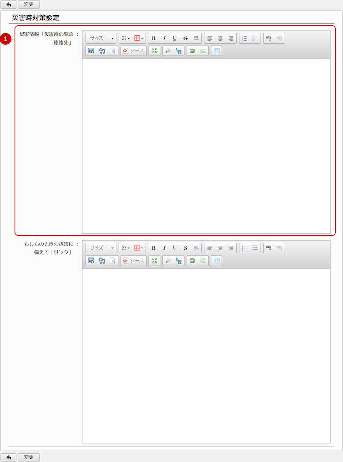 入力した内容は一般機能の"災害情報"タブの「災害時の緊急連絡先」に表示されます。