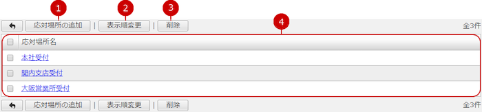 設定メニューの応対場所設定リンクを押すと、応対場所一覧画面が表示されます。