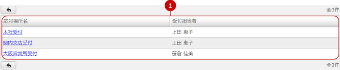 応対場所と、応対場所に対する受付担当者が表示されます。