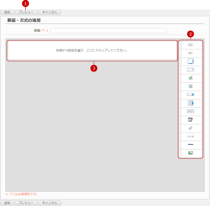 プレビューボタンを押すと、追加した書式部品がどのように画面に表示されるか確認することができます。