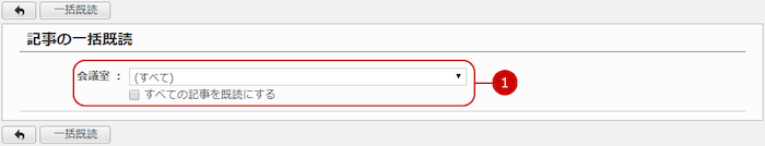 チェックボックスにチェックし、[一括既読]ボタンを押すと、選択した会議室の記事が一括で既読に変更されます。