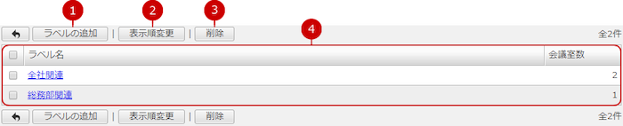設定メニューのラベル設定リンクを押すと、ラベル一覧画面が表示されます。