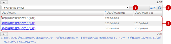設定メニューのレポート閲覧リンクを押すと、プログラムの一覧画面が表示されます。