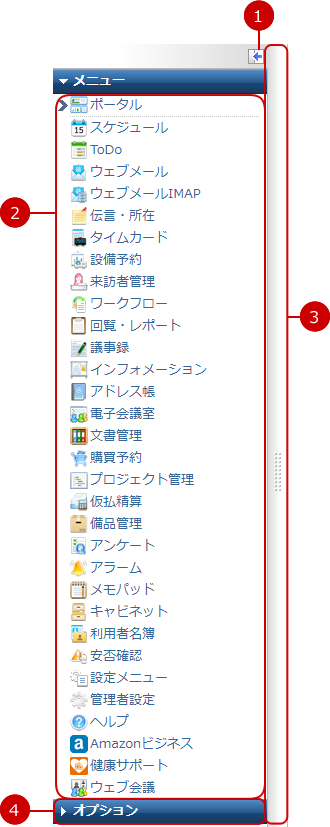 desknet's NEO には以下の2つのタイプのメニューが用意されています。