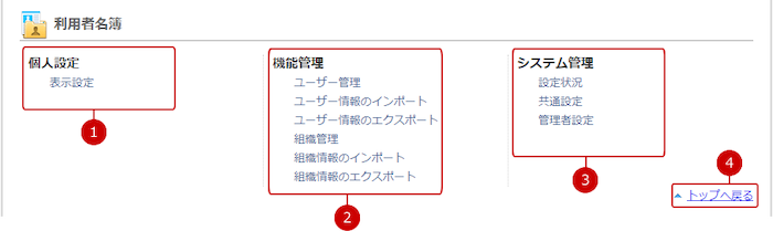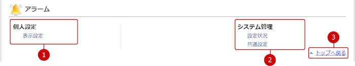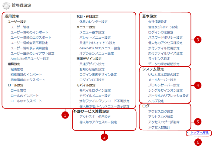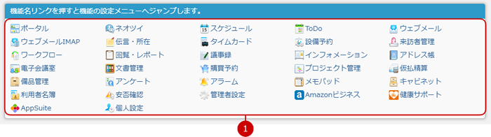 管理者設定の設定メニューリンク集