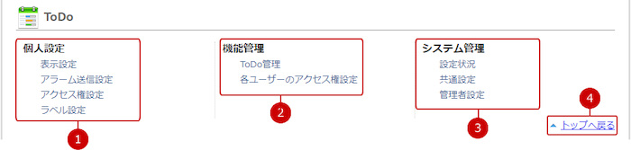 ToDoの設定メニューリンク集
