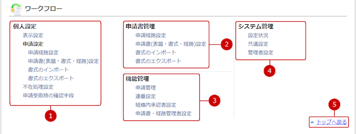 ワークフローの設定メニューリンク集