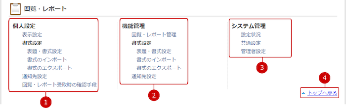 回覧・レポートの設定メニューリンク集