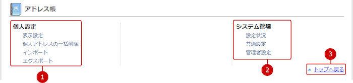 アドレス帳の設定メニューリンク集