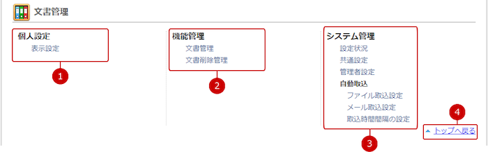 文書管理の設定メニューリンク集