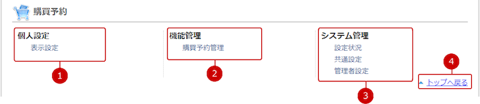 購買予約の設定メニューリンク集