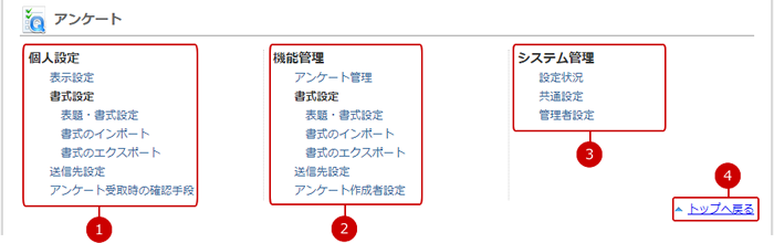 アンケートの設定メニューリンク集
