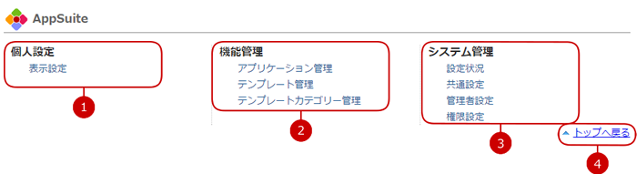 AppSuiteの設定メニューリンク集