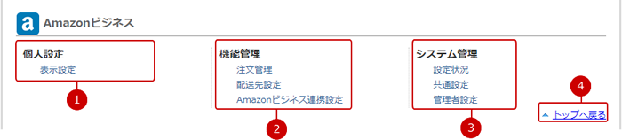 Amazonビジネスの設定メニューリンク集