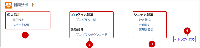 健康サポートの設定メニューリンク集