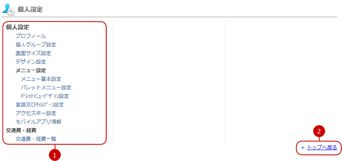 個人設定の設定メニューリンク集