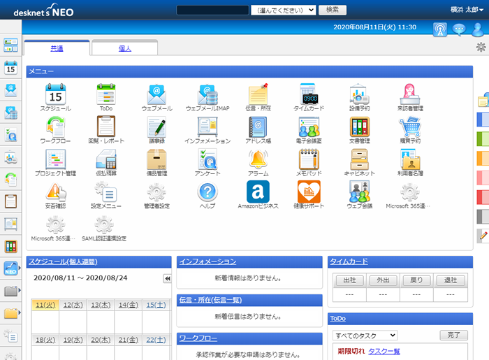 正しくサインインできるとdesknet's NEOのポータル画面が表示されます。