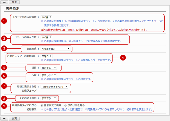 設備予約の表示設定をする