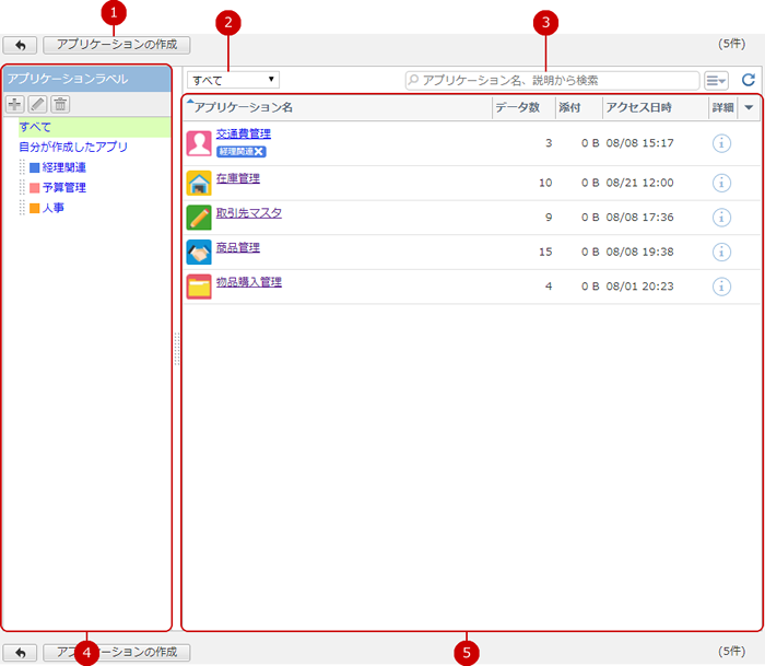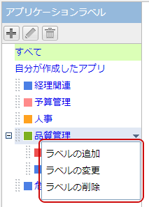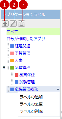 アプリケーション一覧のラベル一覧では、ラベルの追加、変更、削除を行うことができます。